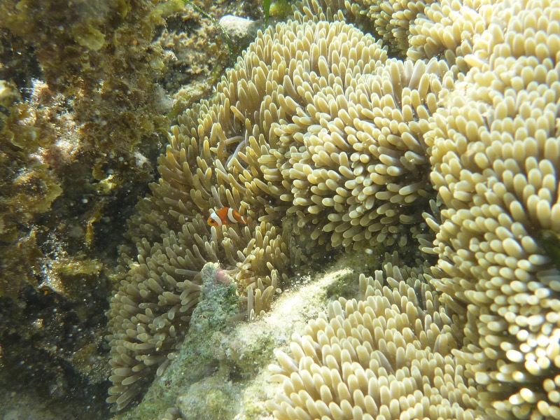 見つけたイソギンチャクを長男がサンゴのかけらでしばらくまさぐっていると、