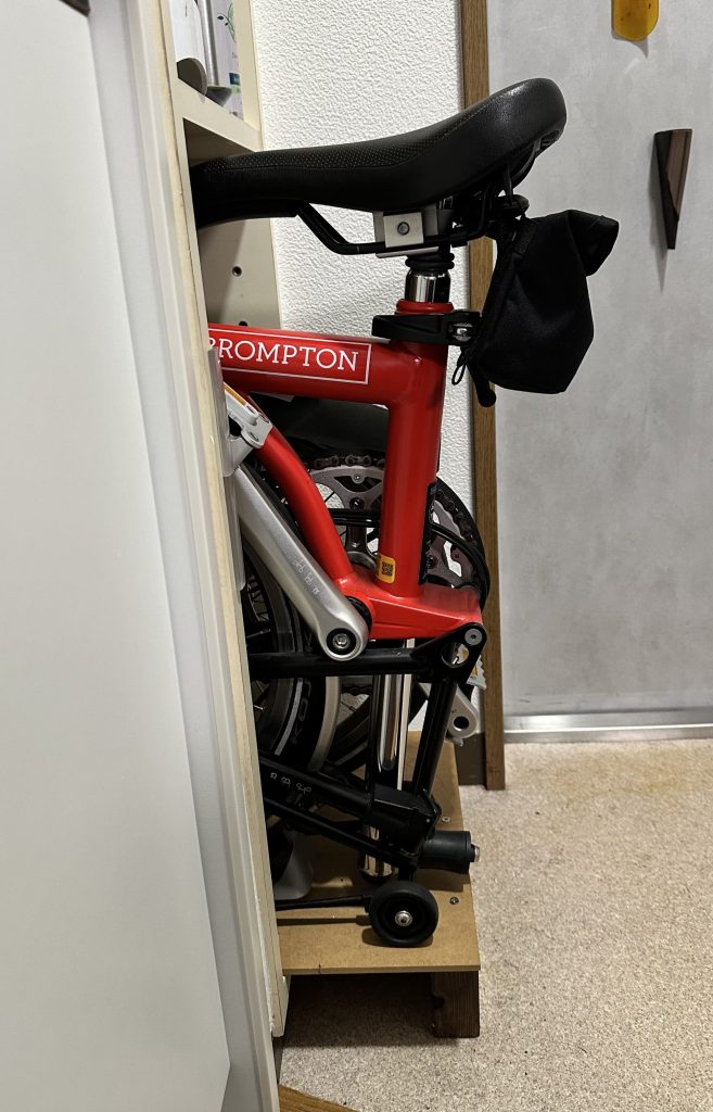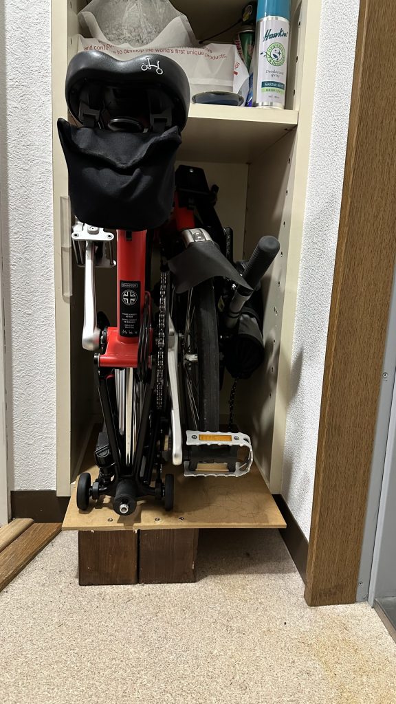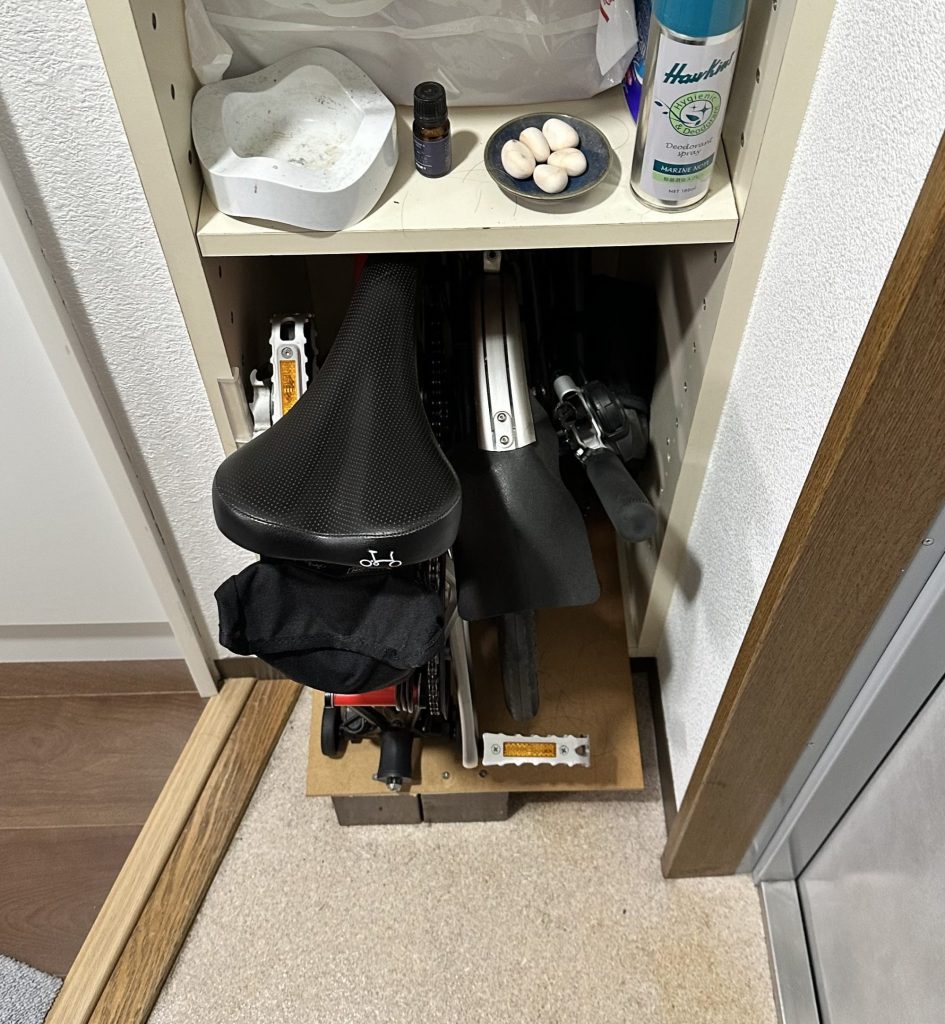 今度の事務所は狭くて、自転車をたたまずに置いておくスペースが無い。